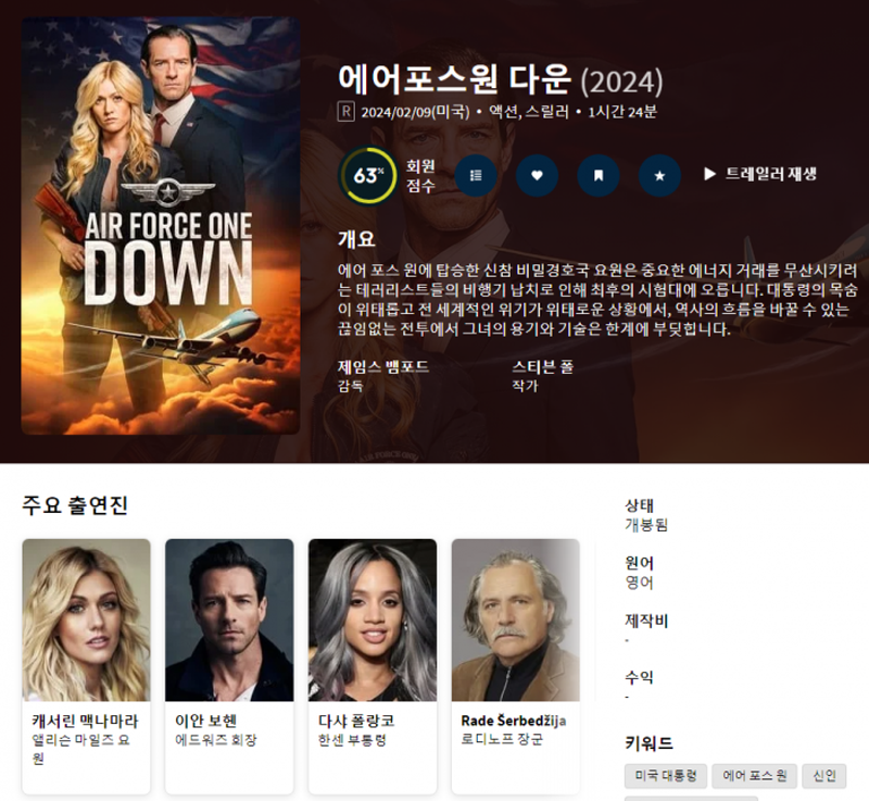 자막 2024 자체자막 에어 포스 원 다운 1080p