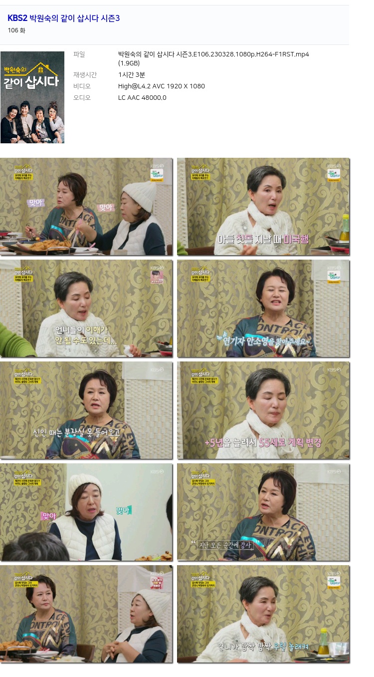 [KBS2] 박원숙의 같이 삽시다 시즌3.E106.230328.1080p.H264-F1RST