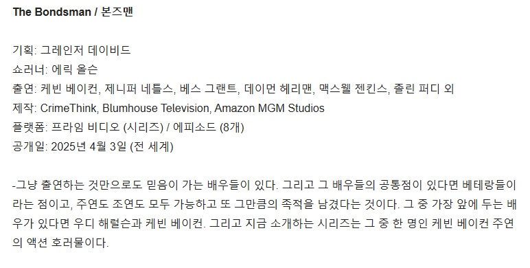 자막 [ 4월 ] 악마와의 계약 퇴마 액션 [ 더 본 즈 맨 ] 8부작 완결 완벽자막