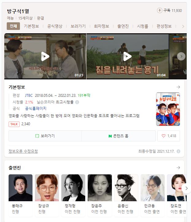 [모얘드]방구석 1열 [E181-E185][191부작]720p.장성규,봉태규[묶음..