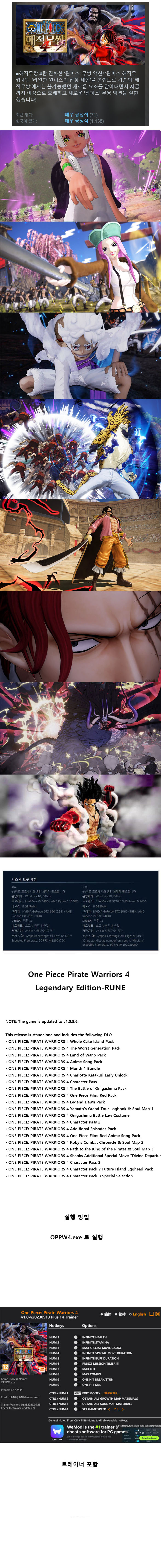 [한글 무설치]원피스 해적무쌍4 V1.0.8.6-레전더리 에디션+트레이너